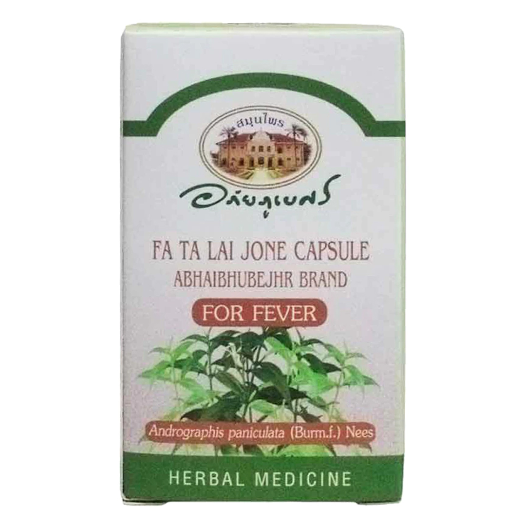 อภัยภูเบศร ฟ้าทะลายโจร เป็นยาสามัญประจำบ้าน (ฆฑ. 724/2562) ที่มีส่วนผสมของสมุนไพรไทยฟ้าทะลายโจร มีสรรพคุณช่วยแก้ไข และอาการร้อนในวิธีเก็บรักษา- เก็บในที่แห้ง อุณหภูมิห้องไม่เกิน 25 องศาเซลเซียส ห่างจากแสงแดดและความร้อนคำเตือน- ห้ามใช้ในผู้ที่มีอาการแพ้ฟ้าทะลายโจรและพืชในกลุ่ม Acanthaceae เช่น เสลดพังพอน ทองพันชั่ง พญาวานร (ว่านง๊อก)- สตรีมีครรภ์และให้นมบุตรห้ามใช้ เนื่องจากมีผลให้ทารกในครรภ์มีรูปร่างผิดปกติได้- ห้ามใช้ ฟ้าทะลายโจรสำหรับแก้อาการเจ็บคอ ในกรณีต่อไปนี้ เช่น เจ็บคอเนื่องจากติดเชื้อแบคทีเรีย Streptococcus group A ผู้ที่มีประวัติไตอักเสบ เนื่องจากติดเชื้อนี้ ผู้ป่วยที่มีประวัติโรคหัวใจรูห์มาติค ผู้ที่มีอาการเจ็บคอเนื่องจากมีการติดเชื้อแบคทีเรียและมีอาการรุนแรง เช่น ตุ่มหนองในคอ มีไข้สูง หนาวสั่น- ตำรายา จีนกล่าวไว้ว่า คนที่กระเพาะ ม้ามเย็นพร่องห้ามกิน ถ้าใช้อาจเกิดอาการหน้ามืด วิงเวียน มึนงง ท้องอืด ควรหยุดยาแต่ถ้าต้องการใช้ให้ลดปริมาณการใช้ยาลงหรือกินยาหรือสมุนไพรฤทธิ์ ร้อน เช่น ขิง ตะไคร้ กะเพรา ในขณะรับประทานฟ้าทะลายโจร- หากใช้ยาฟ้าทะลายโจรติดต่อกัน 3 วัน แล้วไม่ดีขึ้นหรือยังไม่หาย หรือมีอาการรุนแรงขึ้นระหว่างใช้ควรหยุดใช้ยาและปรีกษาแพทย์